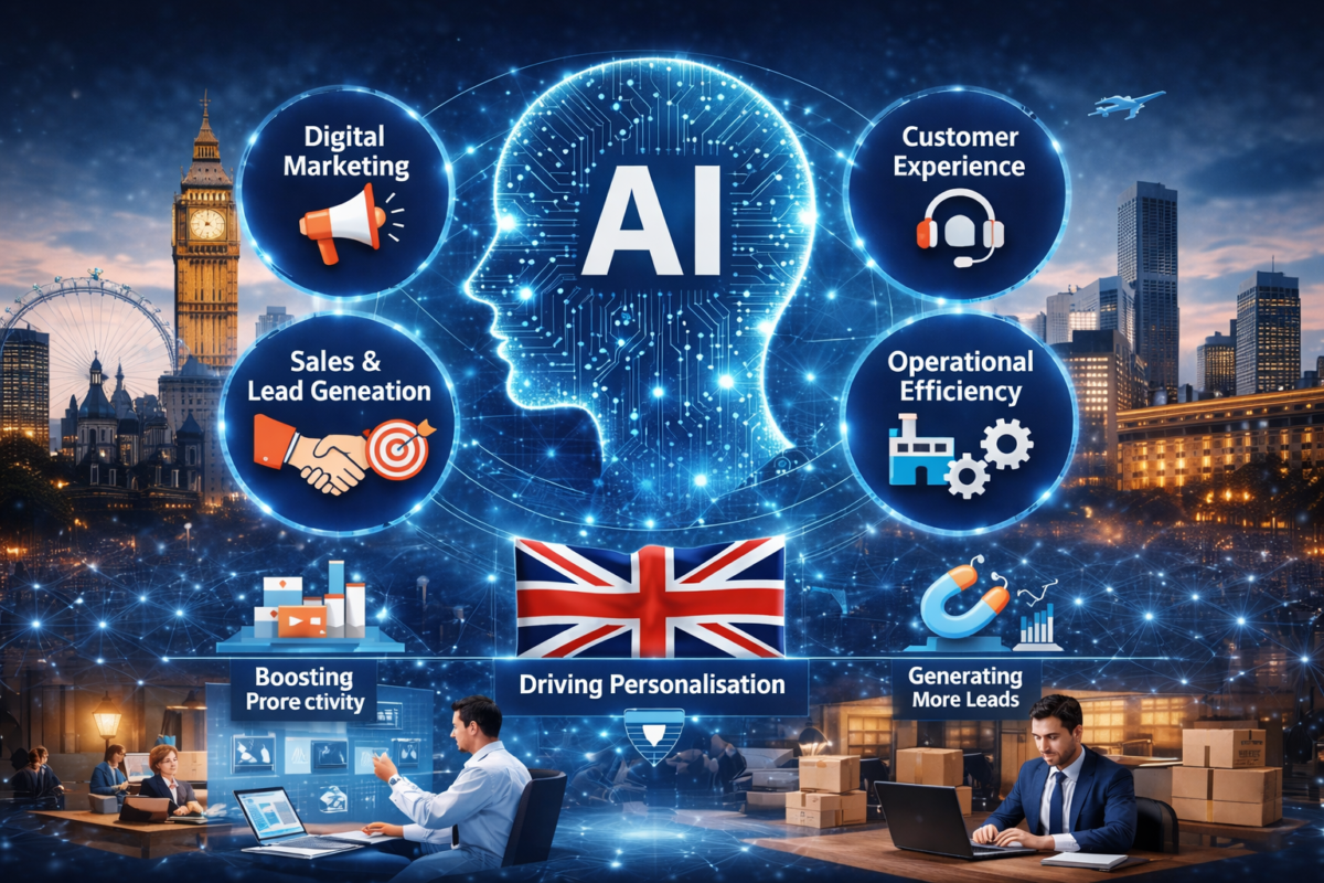 AI for UK businesses refers to the use of artificial intelligence tools and technologies to improve marketing, operations, customer experience, and decision-making.